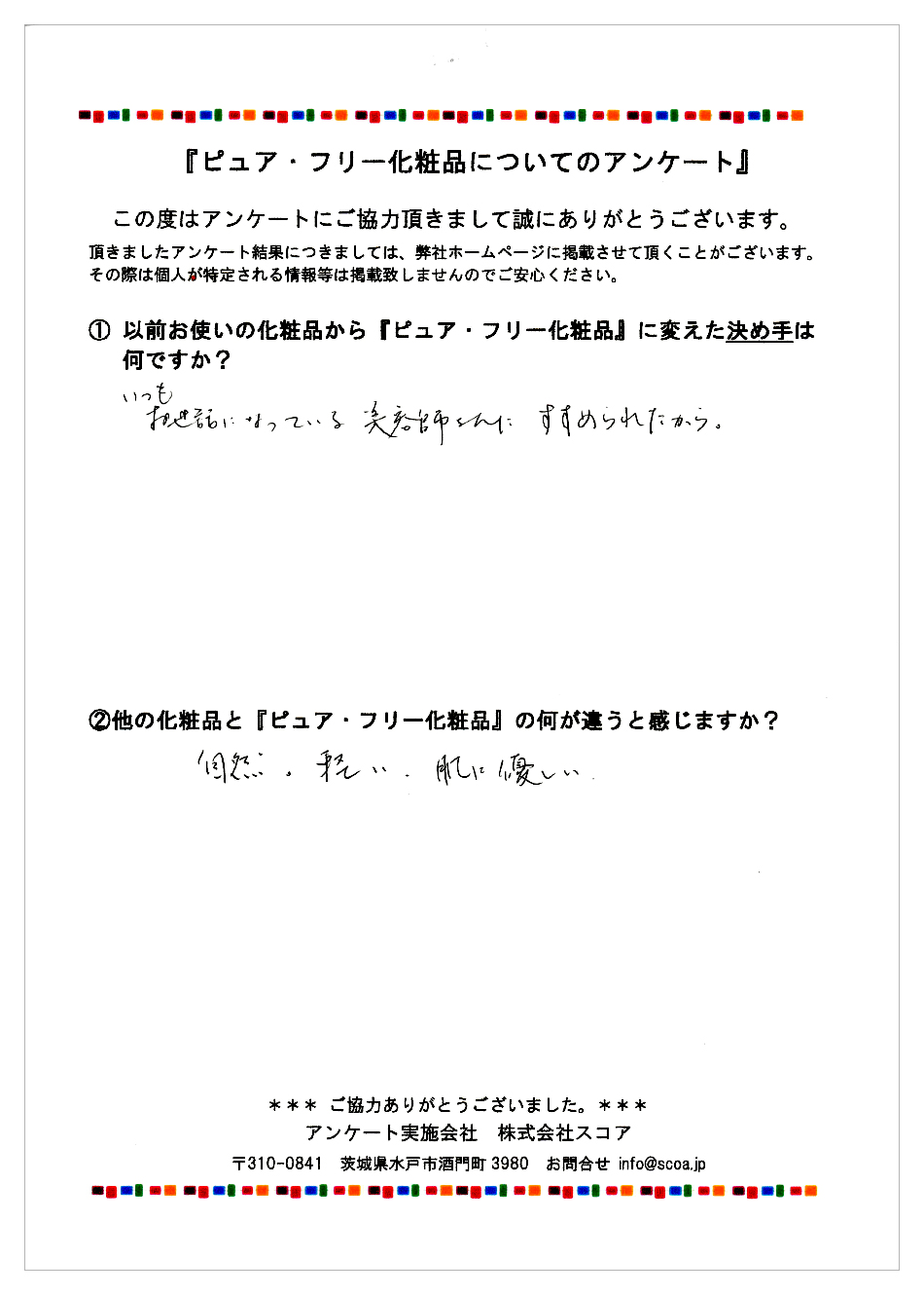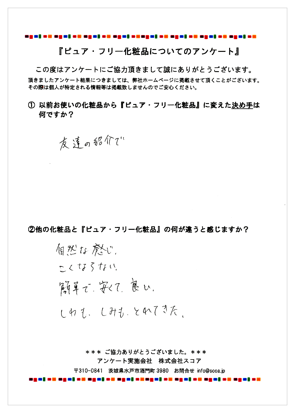 Pure Free 化粧品の理想は、どこまでもナチュラルであること