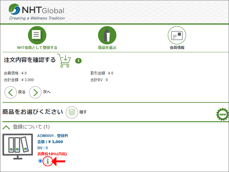 これで商品購入時に会員登録料が加算となります。