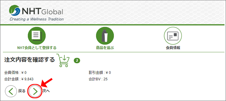5、 ご希望の商品をすべて選択し終わったら、「次へ」ボタンを選択します。