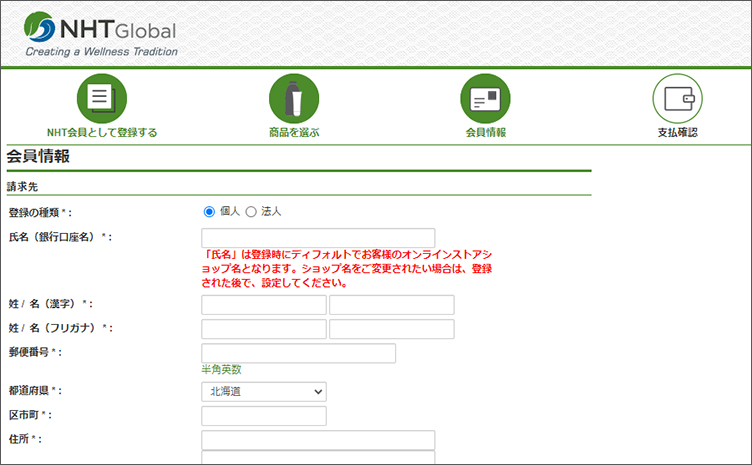 1、会員登録のページへ進みます。